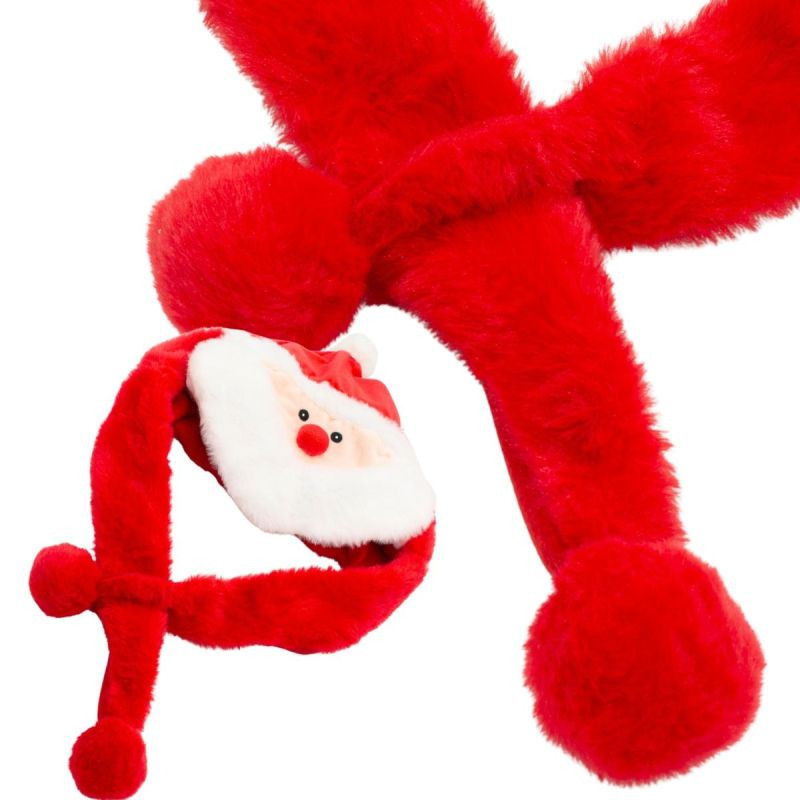 Czerwona czapka z Mikołajem i długimi zwisającymi uszami jest idealny gadżet, by wesoło spędzić czas Świąt Bożego Narodzenia i Mikołajek.