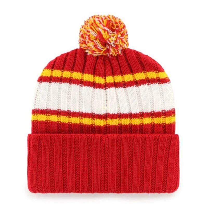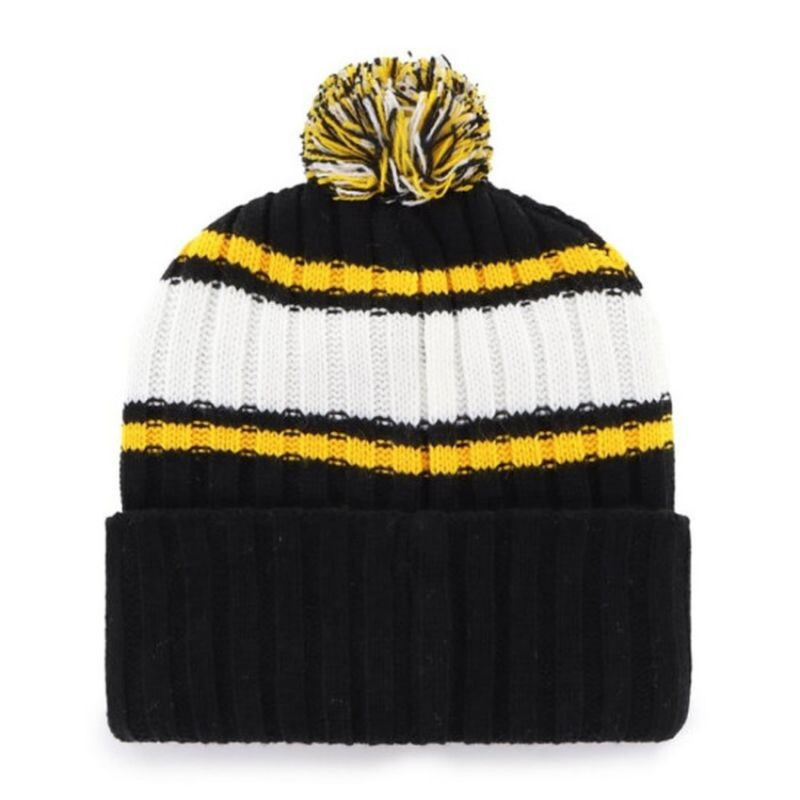 Czapka zimowa '47 NHL Plateau To doskonały wybór dla fanów NHL, którzy szukają stylowego i funkcjonalnego nakrycia głowy na zimę. Dzięki starannemu wykonaniu i sportowemu designowi, czapka zapewnia ciepło, komfort i wyrazisty sposób na pokazanie swojego wsparcia dla ulubionej drużyny. Główne cechy: Dzianinowa konstrukcja: Czapka wykonana z wysokiej jakości elastycznego materiału, który idealnie dopasowuje się do kształtu głowy, gwarantując ciepło i komfort nawet w najchłodniejsze dni. Zwijany mankiet: Stylowy, zwijany mankiet nie tylko poprawia wygląd czapki, ale również pozwala na lepsze dopasowanie, dodatkowo chroniąc uszy przed zimnem. Pompon: Klasyczny pompon dodaje czapce sportowego, zabawnego charakteru, nadając jej wyjątkowy styl. Wzór w paski: Czapka ma wzór w paski w barwach drużyny, co podkreśla sportową tożsamość i dodaje oryginalności. Płaska naszywka z logo: Na czapce znajduje się płaska naszywka z logo drużyny i nazwą zespołu, co nadaje jej autentyczny, oficjalny wygląd. Materiał: Wykonana w 100% z akrylu, co czyni ją trwałą, ciepłą i przyjemną w noszeniu. Czapka zimowa '47 NHL Plateau to idealne połączenie mody, funkcjonalności i pasji do hokeja. Świetnie sprawdzi się zarówno podczas kibicowania na meczu, jak i na co dzień w zimowych warunkach. Czapka '47 NHL Plateau to oficjalnie licencjonowany produkt, co gwarantuje wysoką jakość wykonania oraz autentyczność wzoru i logo