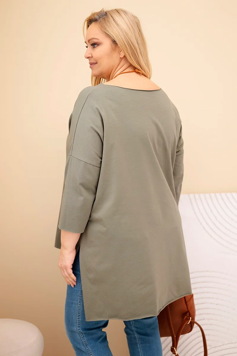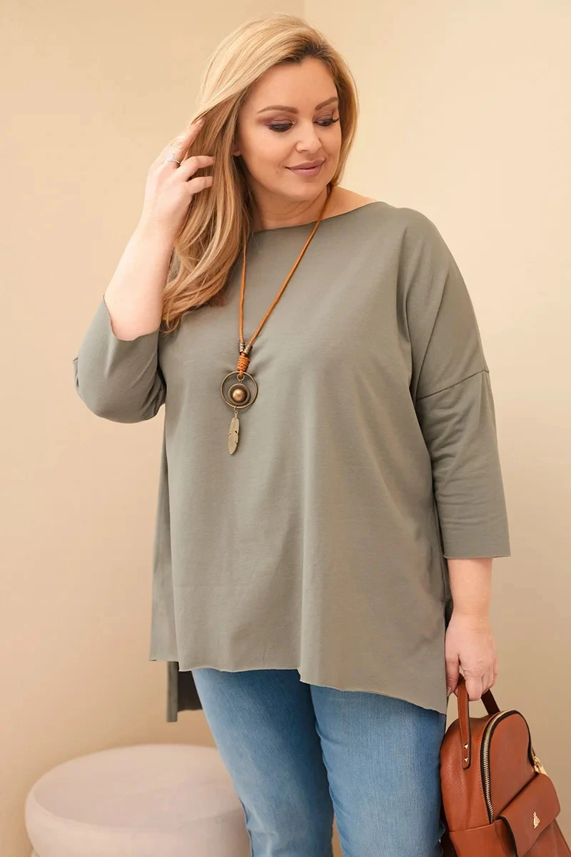 Dámská asymetrická bavlněná blůza Plus Size s náhrdelníkem khaki