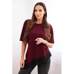 Dámská asymetrická bavlněná blůza s krajkou dole bordová