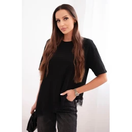 Dámská asymetrická bavlněná blůza s krajkou dole černá