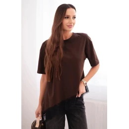 Dámská asymetrická bavlněná blůza s krajkou dole hnědá