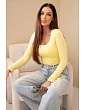 Dámská basic blůza se čtvercovým výstřihem a dlouhým rukávem béžová