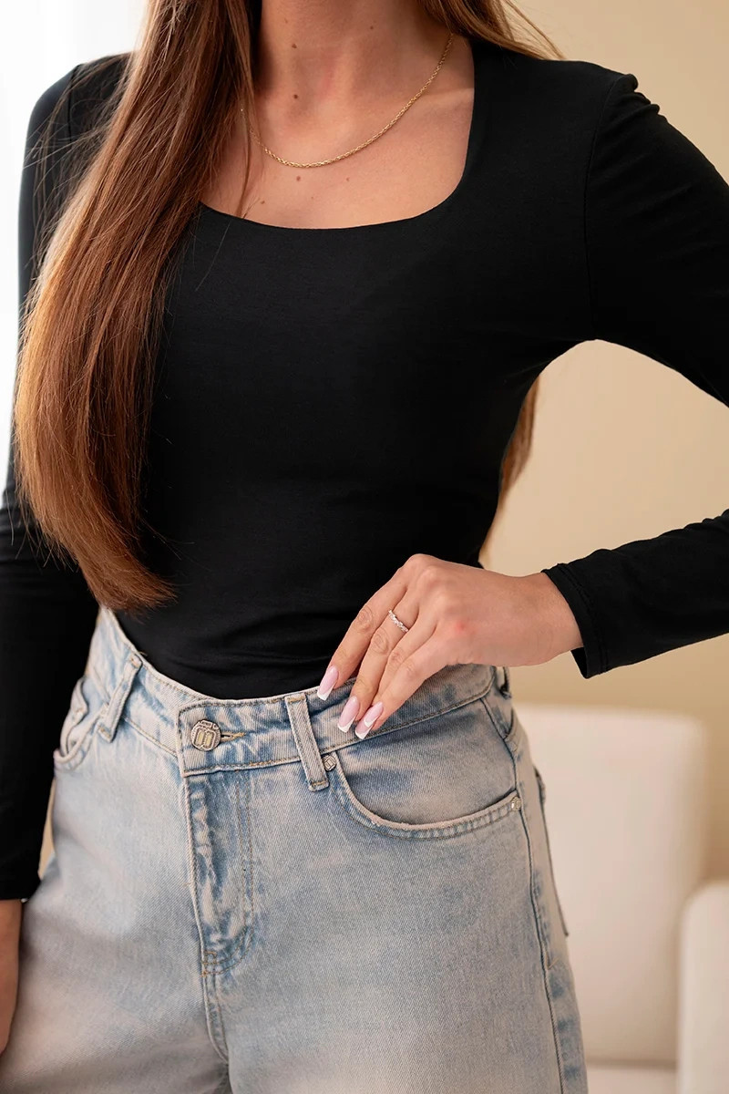 Dámská basic blůza se čtvercovým výstřihem a dlouhým rukávem černá