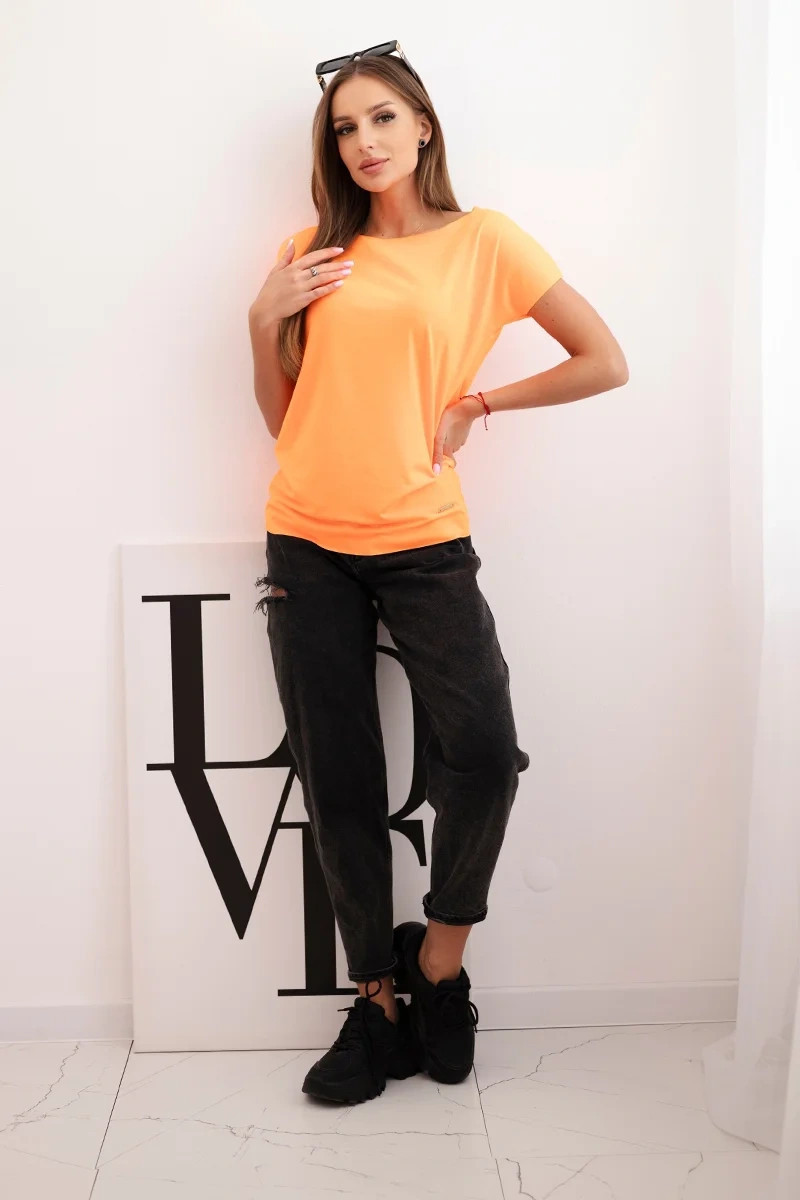 Dámská bavlněná basic blůza s krátkým rukávem neonově oranžová