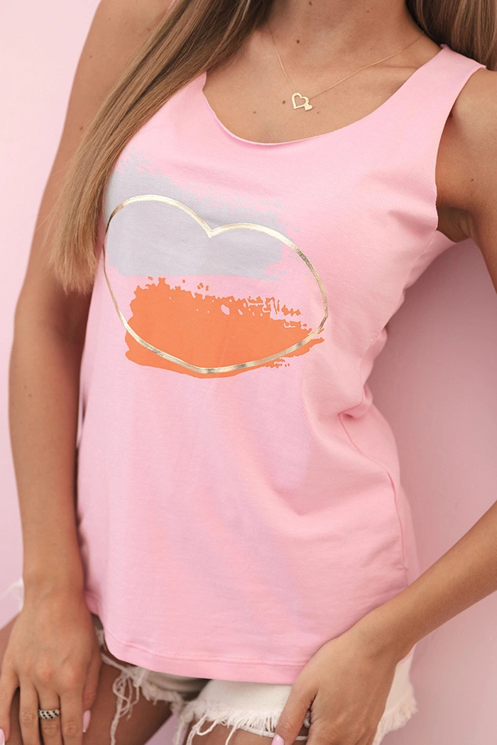 Dámská bavlněná bezrukávová blůza s barevným potiskem srdce růžová jasná