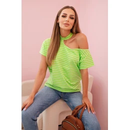Dámská bavlněná blůza na jedno rameno s model 21820431 pruhovaná zelená - K-Fashion