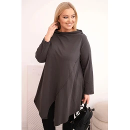 Dámská bavlněná blůza Plus Size asymetrická s model 21798695 rukávem grafitová - K-Fashion
