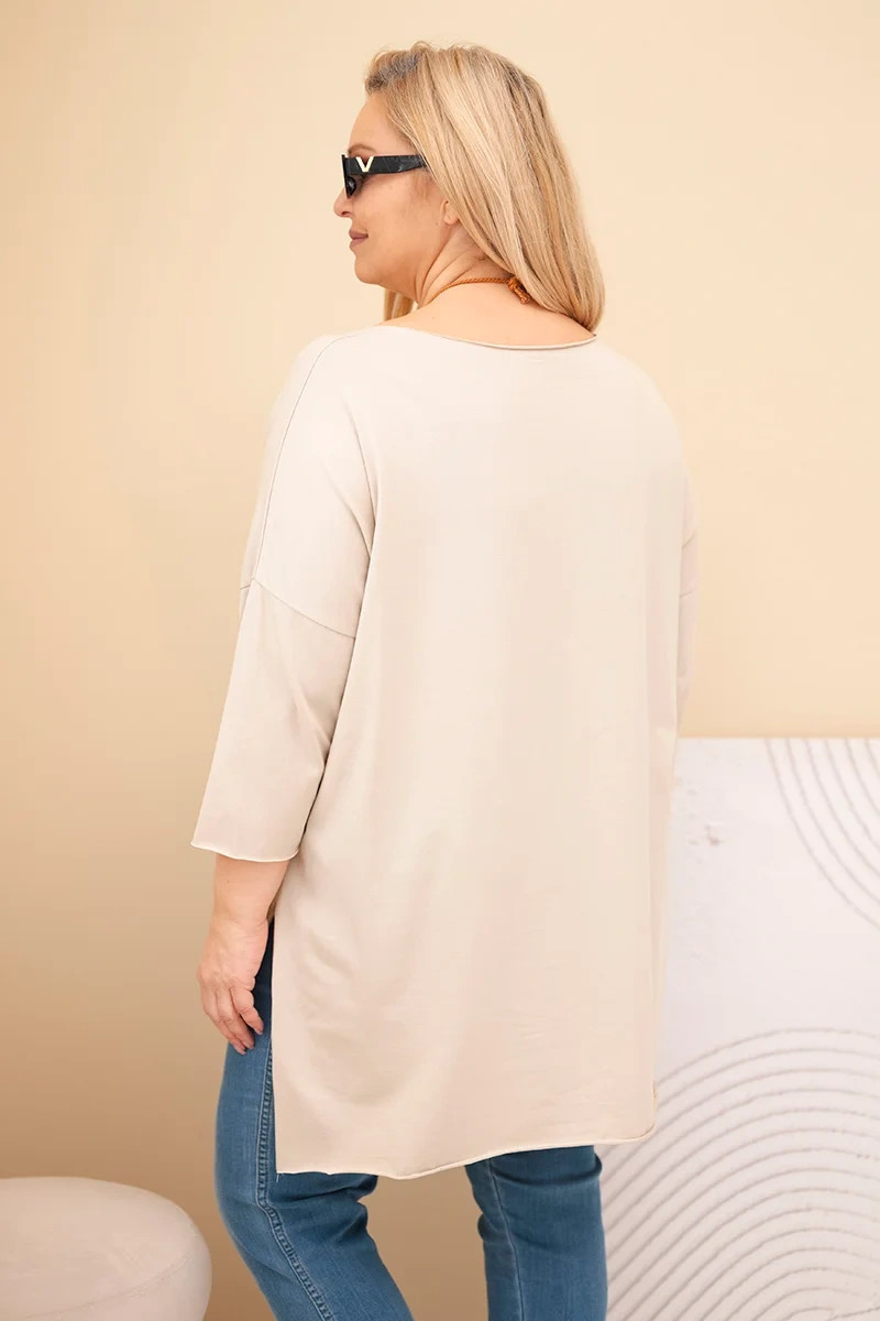 Dámská bavlněná blůza Plus Size asymetrická s náhrdelníkem béžová