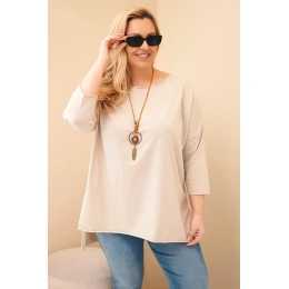 Přidání recenze k Dámská bavlněná blůza Plus Size asymetrická s náhrdelníkem béžová