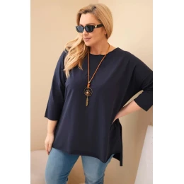 Tato dámská blůza Plus Size je kombinací pohodlí, moderního střihu a vysoké kvality italského zpracování. Model má volný, komfortní střih a prodloužený zadní díl, který se krásně přizpůsobuje postavě a zajišťuje plnou volnost pohybu. Měkká, elastická bavlna zajišťuje, že blůza je příjemná na nošení a skvěle se hodí jak na každodenní nošení, tak do casualových stylizací.