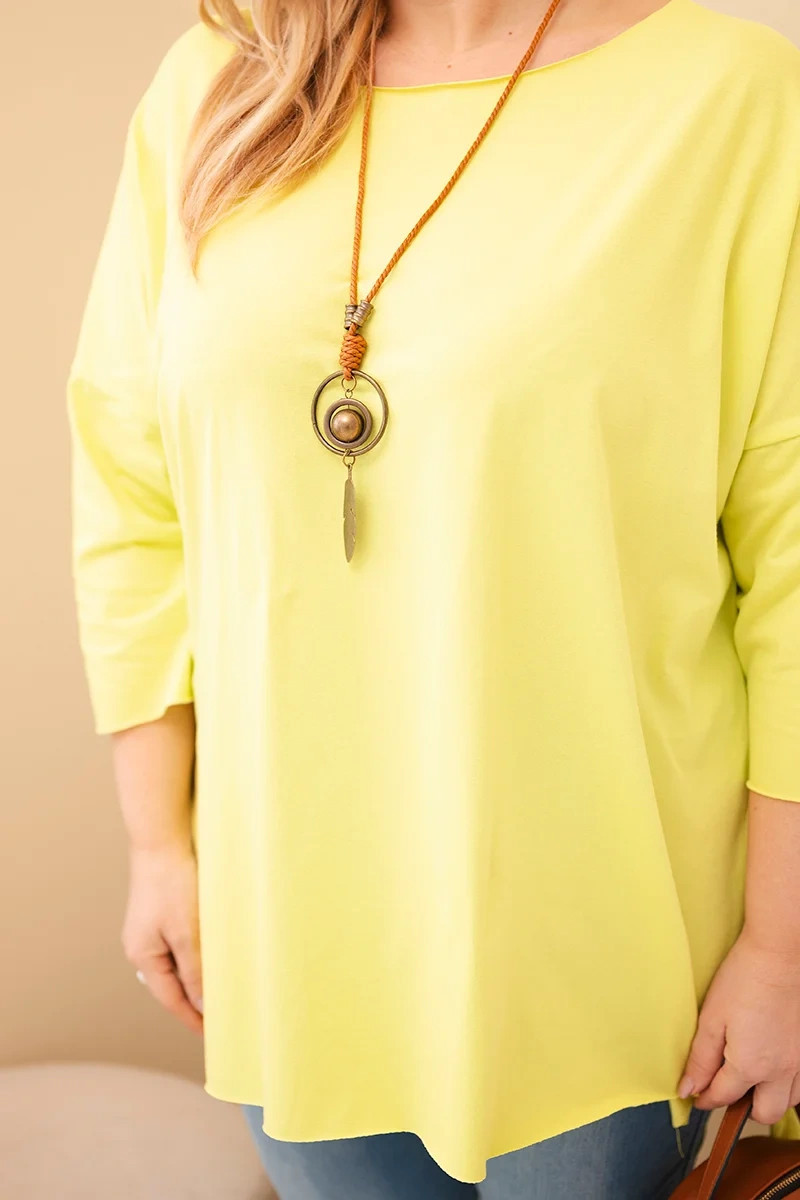 Přidání recenze k Dámská bavlněná blůza Plus Size asymetrická s náhrdelníkem žlutý neon