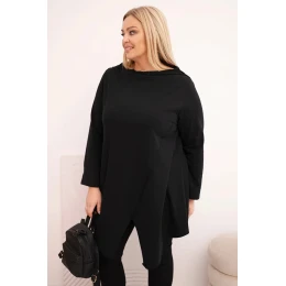 Přidání recenze k Dámská bavlněná blůza Plus Size asymetrická s ohrnovacím rukávem černá