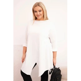 Dámská bavlněná blůza Plus Size asymetrická s ohrnovacími rukávy bílá