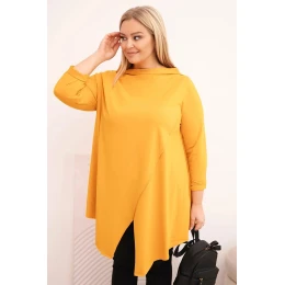 Dámská bavlněná blůza Plus Size asymetrická s ohrnovacími rukávy hořčicová