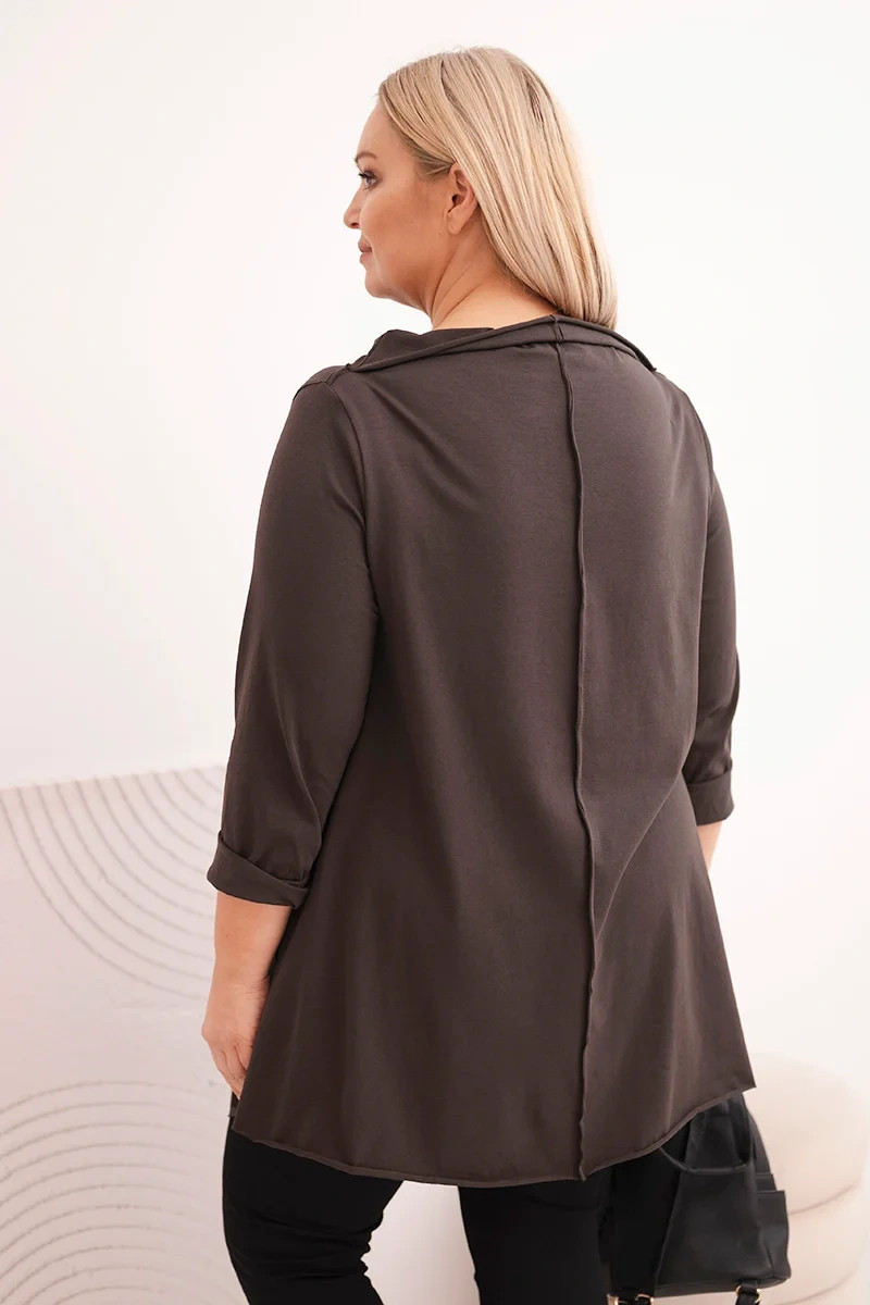 Dámská bavlněná blůza Plus Size asymetrická s ohrnutým rukávem hnědá
