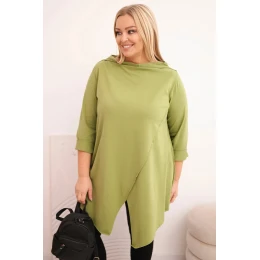 Přidání recenze k Dámská bavlněná blůza Plus Size asymetrická s ohrnutým rukávem olivová