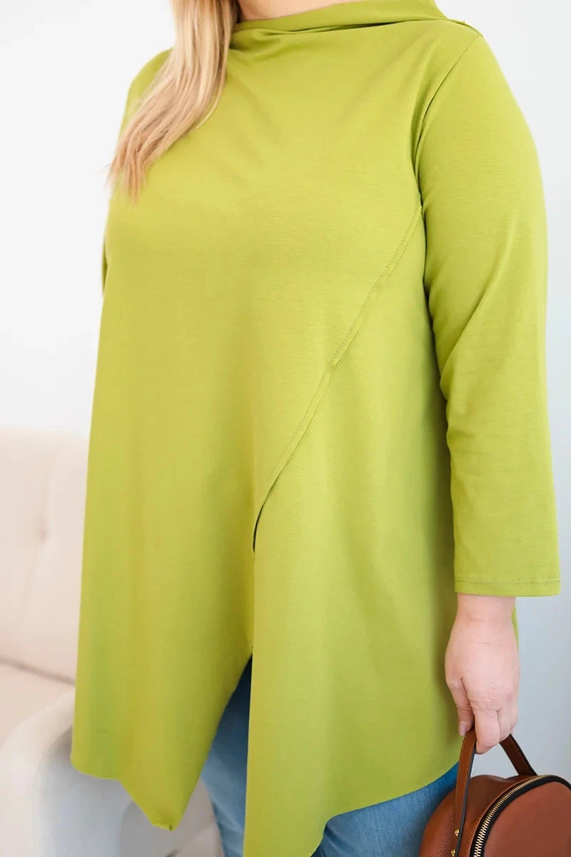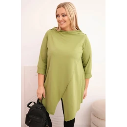 Dámská bavlněná blůza Plus Size asymetrická s ohrnutým rukávem olivová
