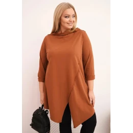 Přidání recenze k Dámská bavlněná blůza Plus Size asymetrická s ohrnutým rukávem tmavě camelová