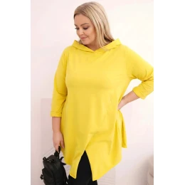 Dámská bavlněná blůza Plus Size asymetrická s ohrnutým rukávem žlutá