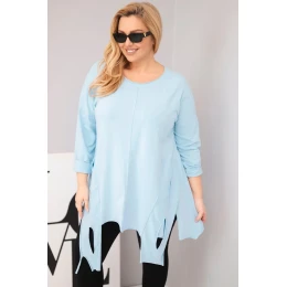Dámská bavlněná blůza Plus Size s asymetrickým lemem a výřezy modrá