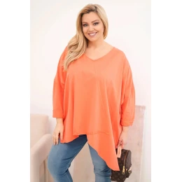 Dámská bavlněná blůza Plus Size s asymetrickým spodním lemem a V výstřihem meruňková