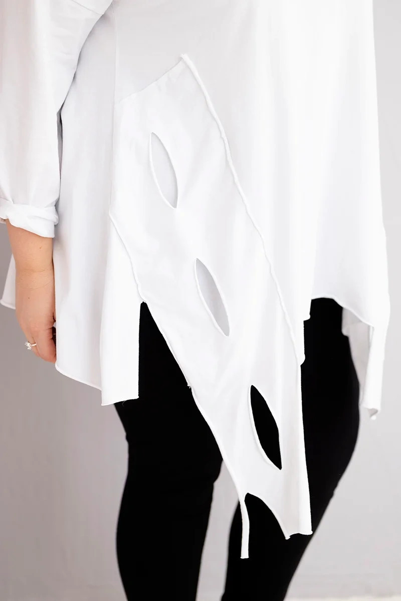 Dámská bavlněná blůza Plus Size s asymetrickým spodním lemem a výřezy bílá