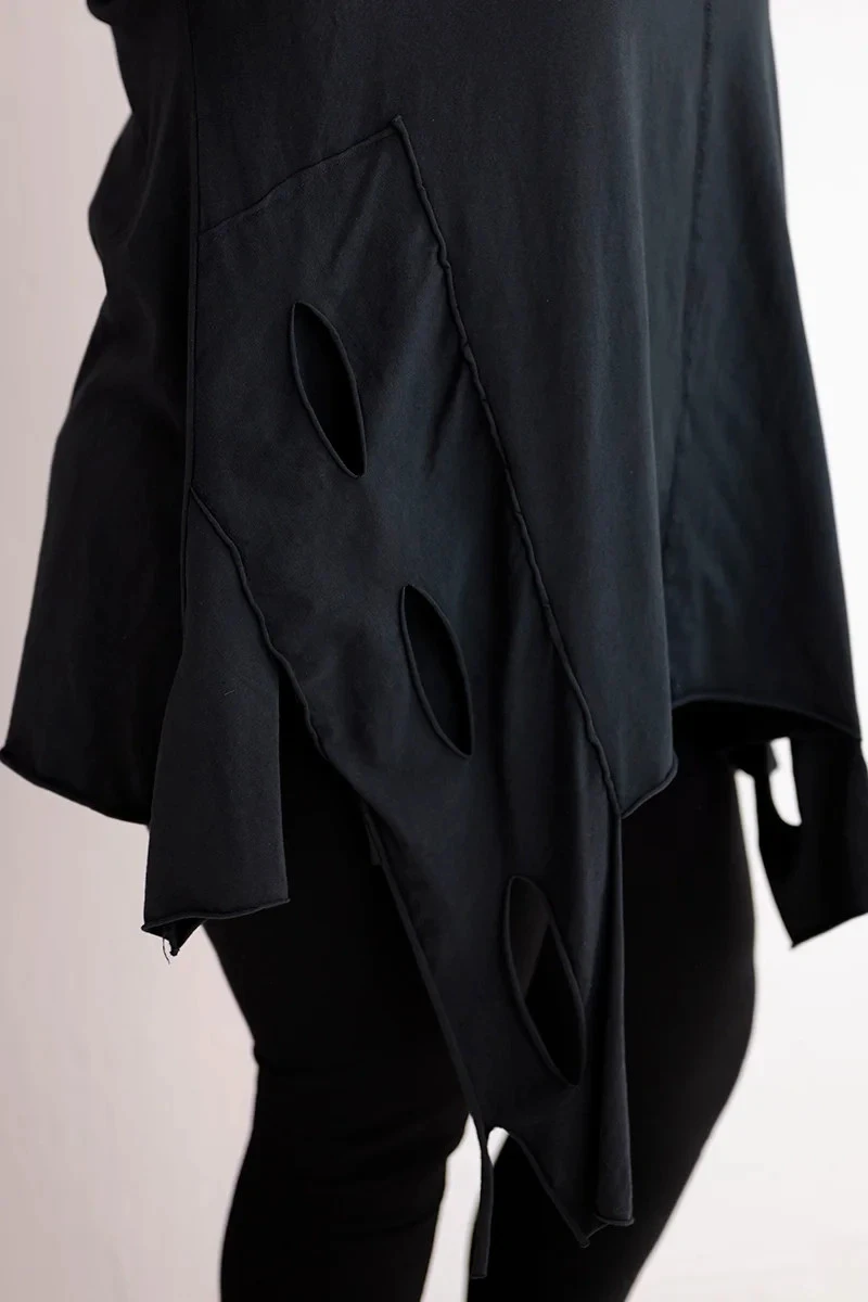 Dámská bavlněná blůza Plus Size s asymetrickým spodním lemem a výřezy černá