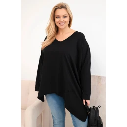 Dámská bavlněná blůza Plus Size s asymetrickým spodním lemem a výstřihem do V černá