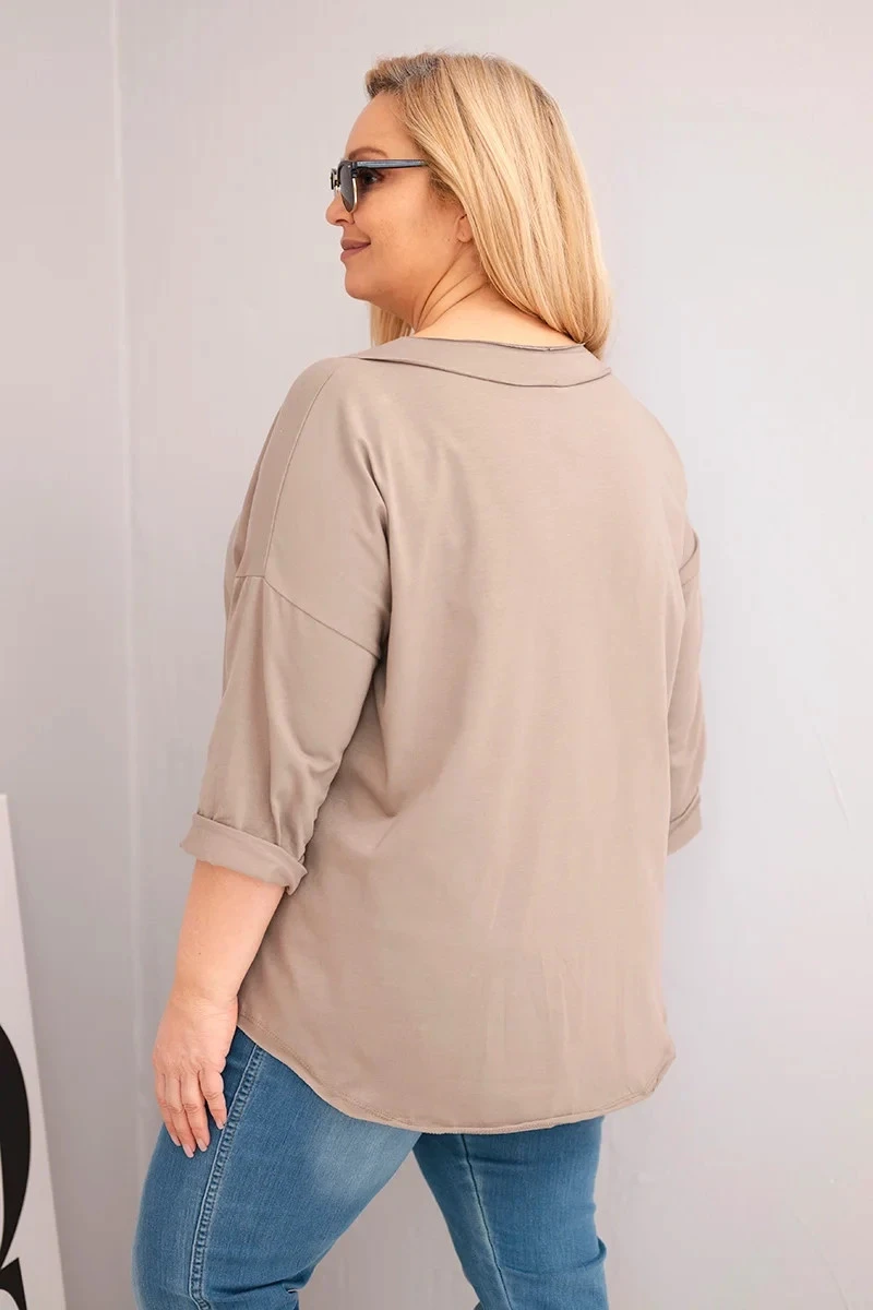 Dámská bavlněná blůza Plus Size s hlubokým V výstřihem a asymetrickým spodním model 21917135 fango - K-Fashion