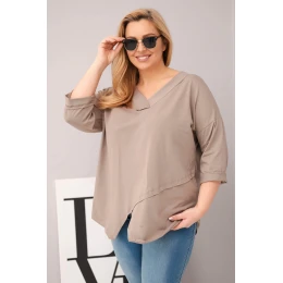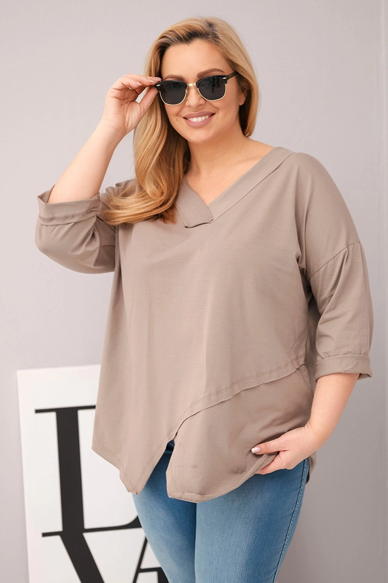 Dámská bavlněná blůza Plus Size s hlubokým V výstřihem a asymetrickým spodním okrajem fango