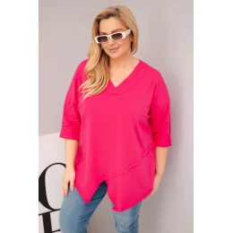 Dámská bavlněná blůza Plus Size s hlubokým výstřihem do V a asymetrickým lemem fuchsie