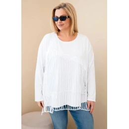 Dámská bavlněná blůza Plus Size s třásněmi bílá