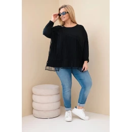 • Dámská bavlněná blůza Plus Size s třásněmi černá