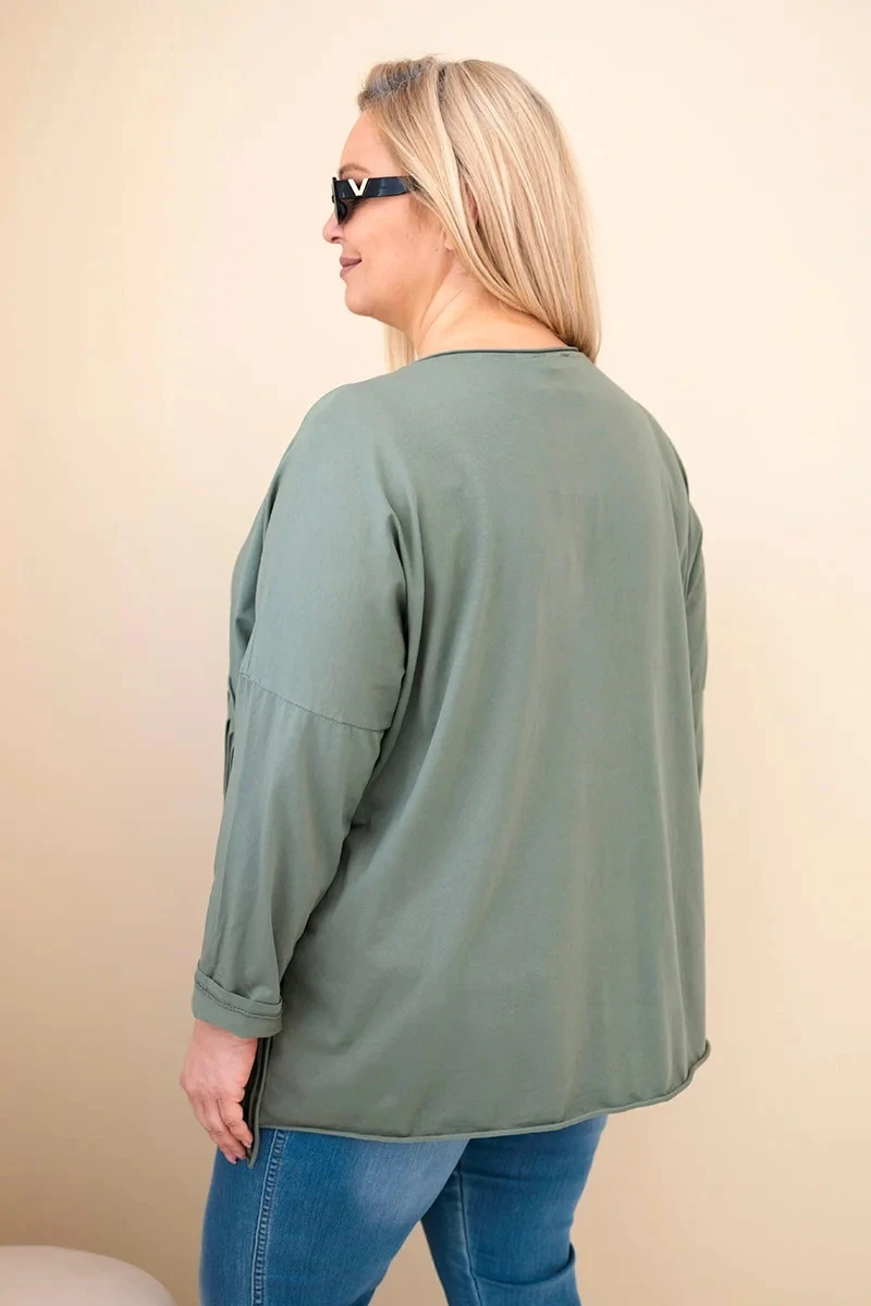Dámská bavlněná blůza Plus Size s třásněmi khaki