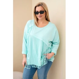 Dámská bavlněná blůza Plus Size s třásněmi mátová