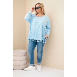 Hledáte stylovou blůzu, která přitáhne pohledy a zajistí komfort nošení? Dámská blůza Plus Size s třásněmi a dlouhým rukávem je výjimečná nabídka pro ženy, které si cení módního, neobvyklého vzhledu. Originální zdobení v podobě dlouhých třásní jí dodává lehkost a charakter, a oversize střih se skvěle přizpůsobí postavě a poskytuje volnost pohybu.