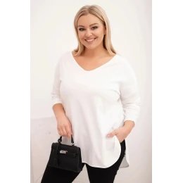 Dámská bavlněná blůza Plus Size s V výstřihem a ohrnutým rukávem bílá