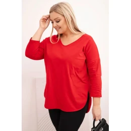 Dámská bavlněná blůza Plus Size s výstřihem do V a ohrnutým rukávem červená