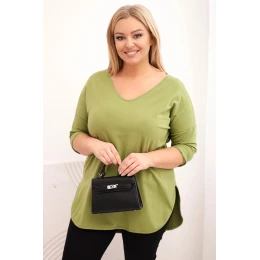 • Dámská bavlněná blůza Plus Size s výstřihem do V a ohrnutým rukávem olivová