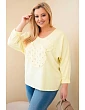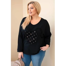 Dlouhý rukáv zajišťuje, že blůza se výborně hodí po celý rok – jak na denní nošení, tak na setkání s přáteli. Ozdobná aplikace s kamínky dodává kouzlo a činí tento model výjimečným na pozadí klasických blůz.