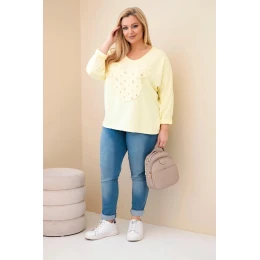 Dámská bavlněná blůza Plus Size s výstřihem do V žlutá