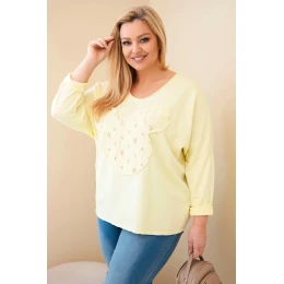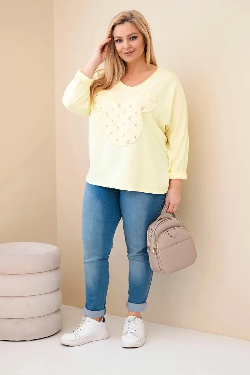 Dámská bavlněná blůza Plus Size s výstřihem do V žlutá
