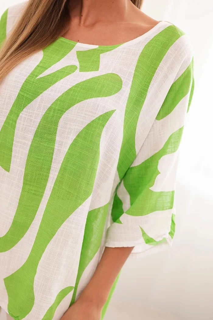 Dámská bavlněná blůza s abstraktním vzorem zelená