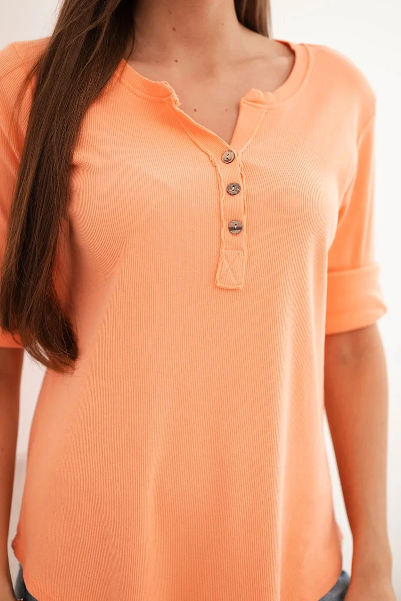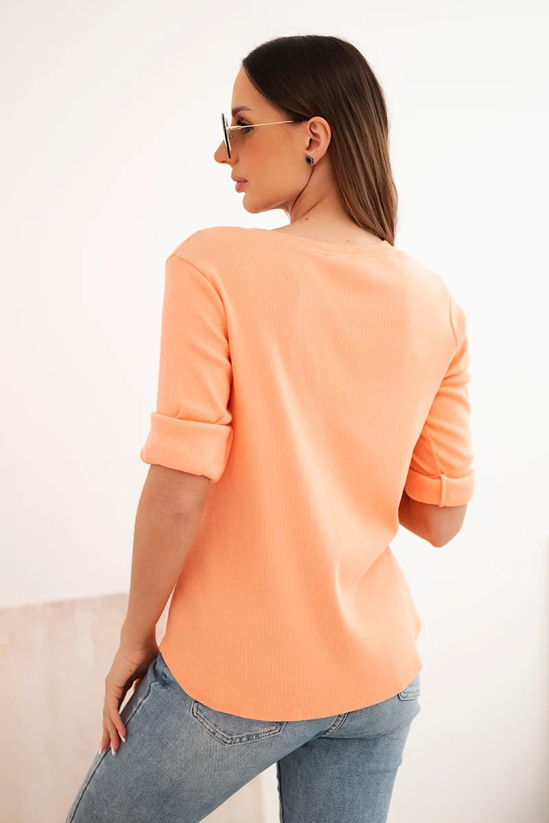 Dámská bavlněná blůza s dlouhým rukávem a knoflíky u výstřihu meruňková