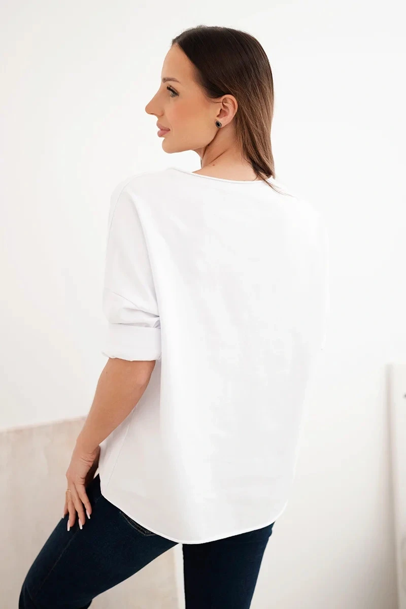 Volnější střih neomezuje pohyby a výstřih do V krásně zvýrazňuje krk. Jemná srdíčka dodávají celku subtilní, dívčí charakter, který vás odliší od davu. Ideální k džínům, legínám nebo sukni – vytvořte si svůj styl!