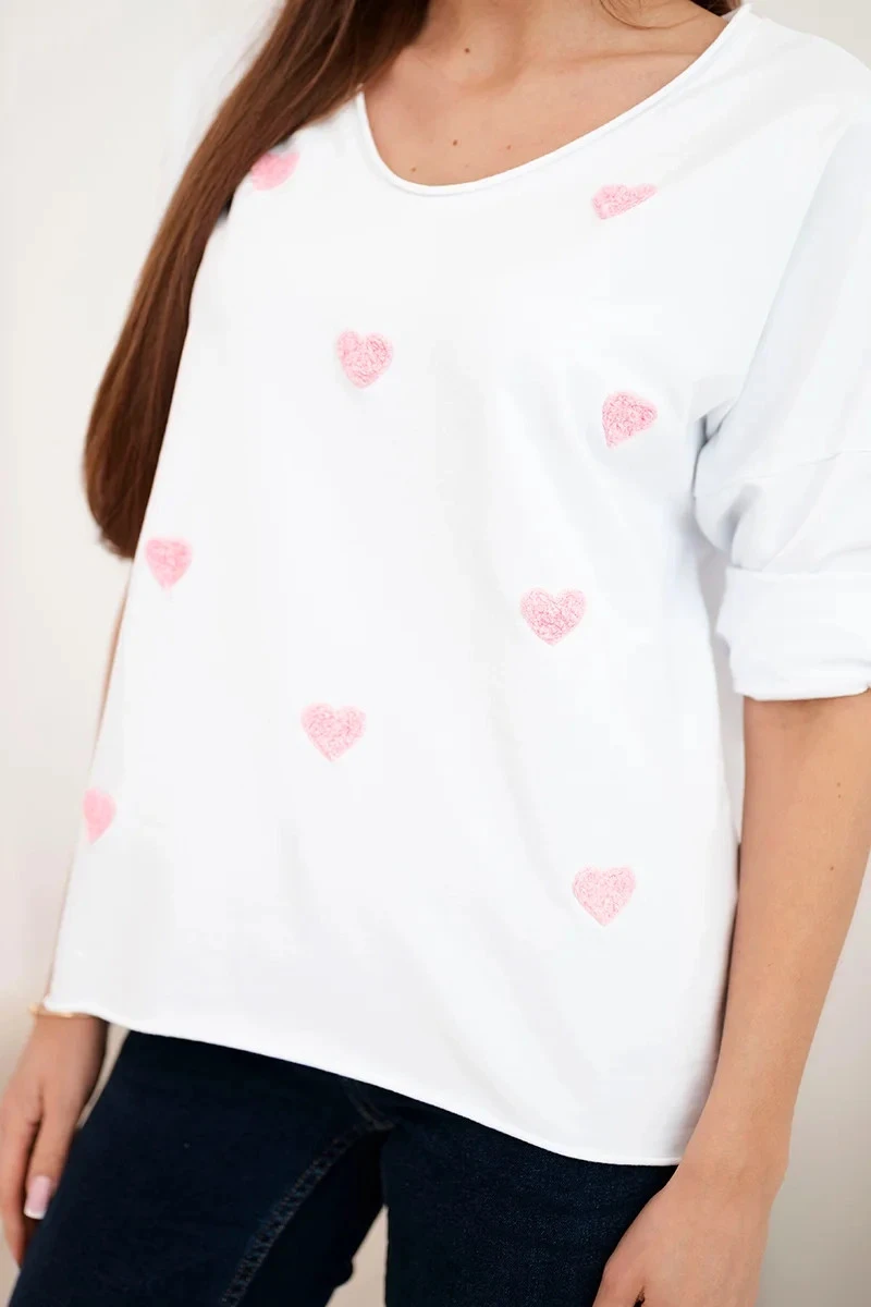 Dámská bavlněná blůza s dlouhým rukávem a srdíčky bílá+růžová