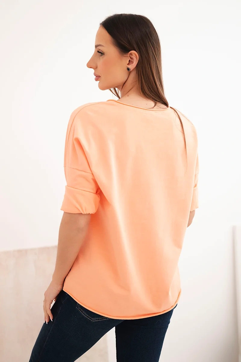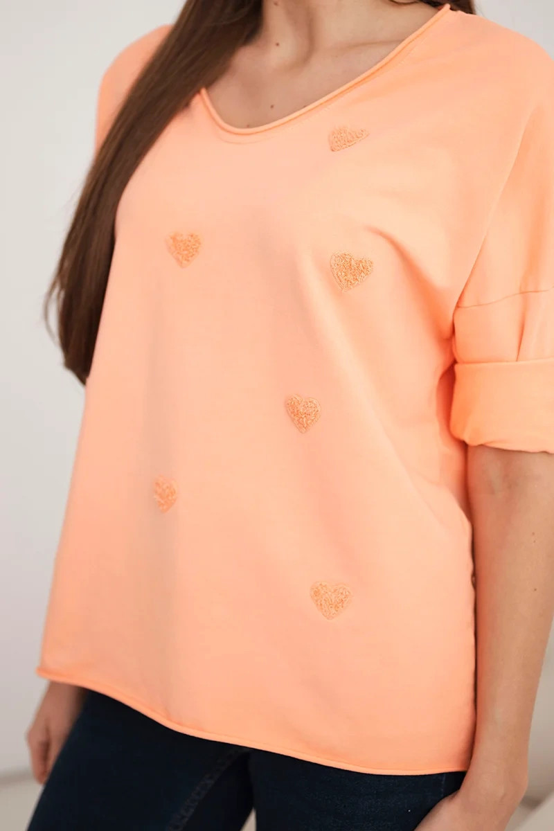 Dámská bavlněná blůza s dlouhým rukávem a srdíčky meruňková