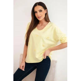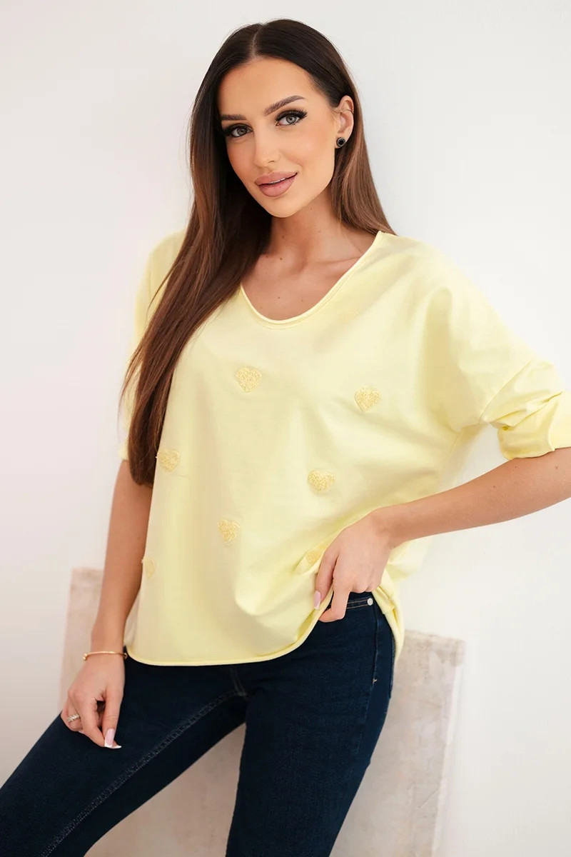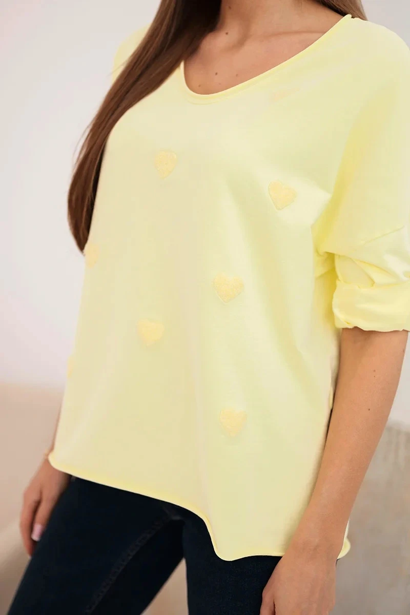 Dámská bavlněná blůza s dlouhým rukávem a srdíčky žlutý