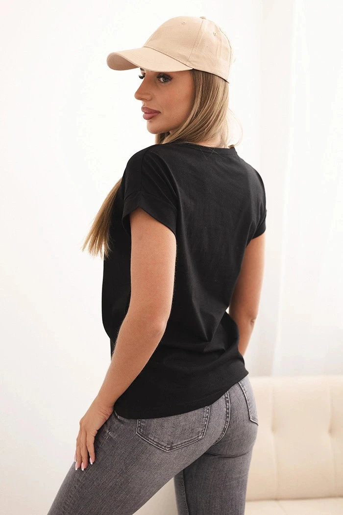 Dámská bavlněná blůza s krátkým rukávem a barevným potiskem černá
